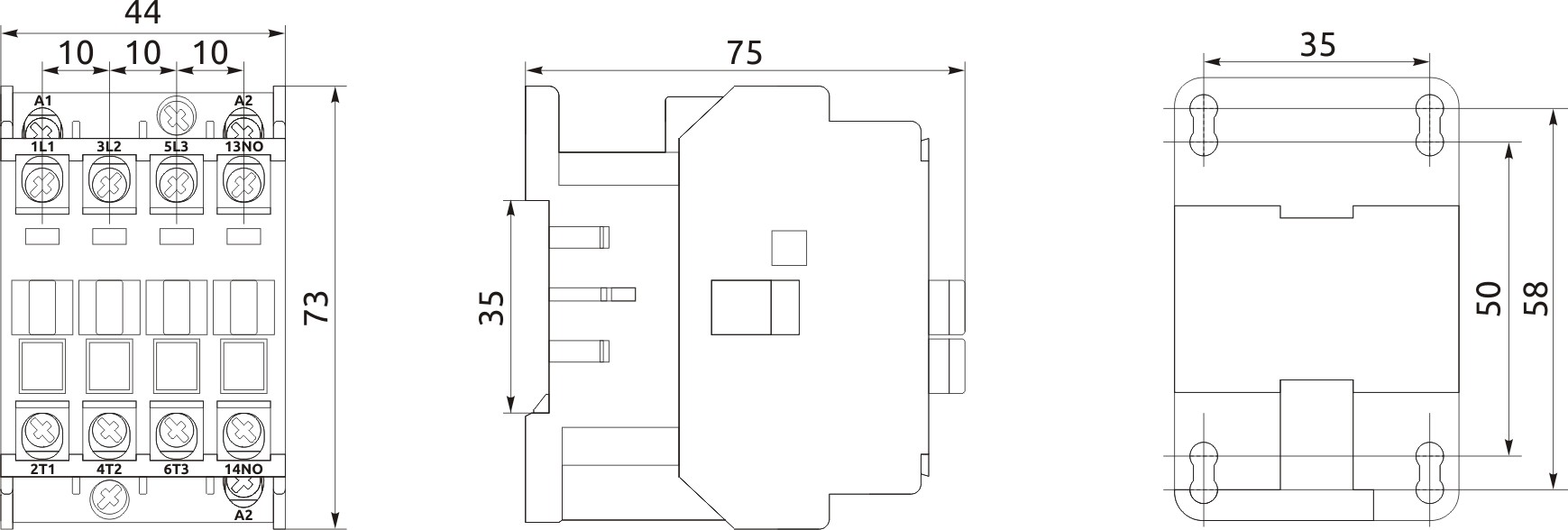 | Номінальна потужність головних контактів АС-3, kW при 230/400/690 | 3 / 5.5 / 7.5 |